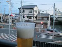 ベランダで自宅ビアガーデン。
