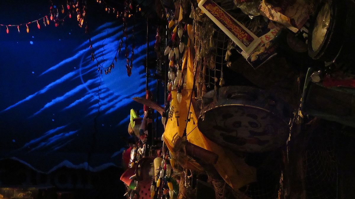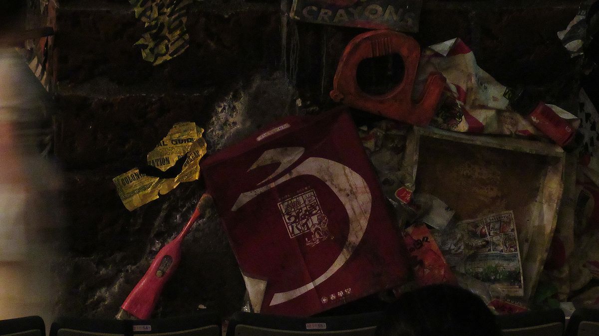 都市のゴミ捨て場を模したセットの中にはご当地ゴミが。