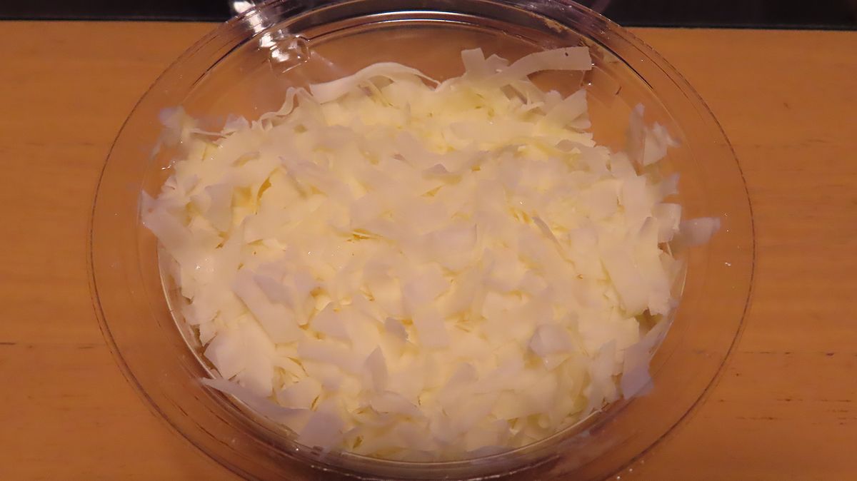 大量の削られたチーズがふわっと乗っかっている。