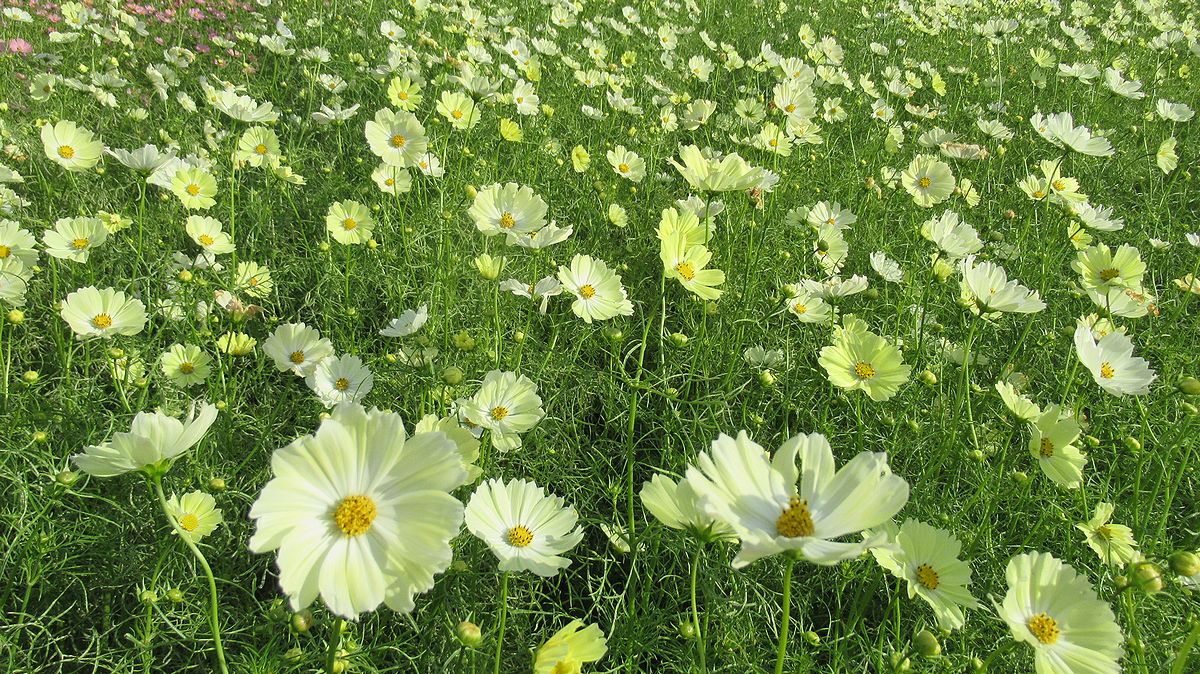 花畑のピンクの秋桜は少しくたびれ始めていたけれど、