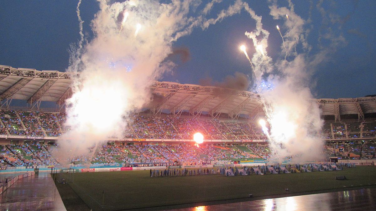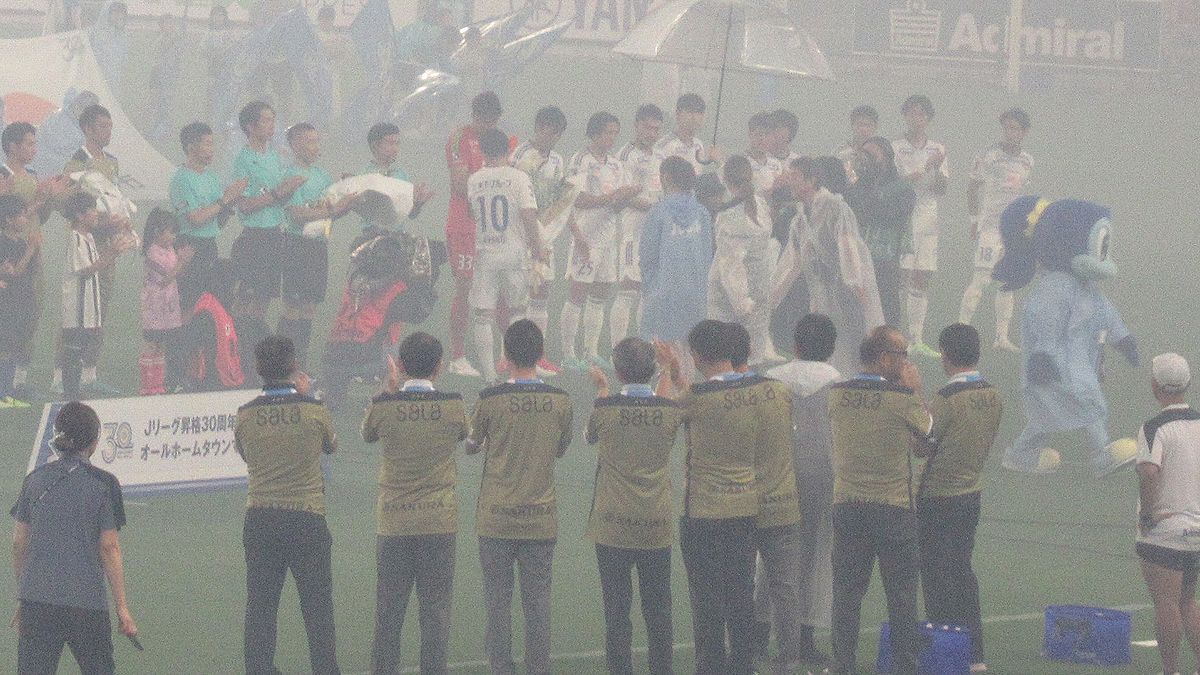 (煙るスタジアムの光景はまるで発煙筒を焚かれた欧州風)