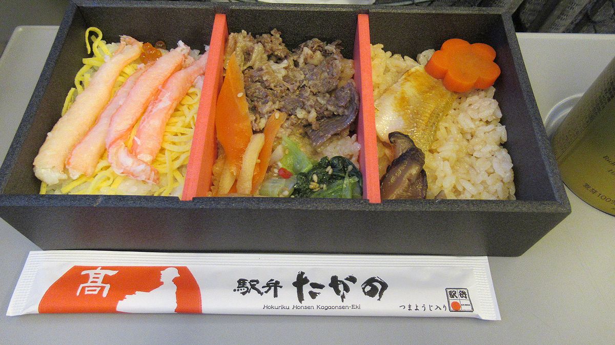夕食は金沢に来たのに食べることができていない「8番ラーメン」を駅ナカでいただきたかったのですが、「しらさぎ」自由席に座れないと帰路が地獄になるなので、車内で駅弁にしました。ビールはもちろん、磐田の勝利を祝してのヱビスビール!!