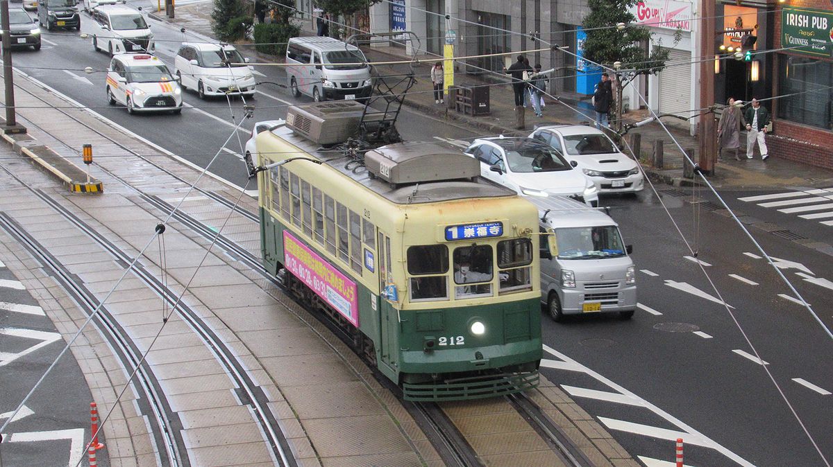 帰りは市電に乗ってみました。スタジアムシティサウス駅から長崎駅前まで2駅。コインロッカーの荷物を出して、再び市電でホテル最寄りの「観光通」電停に向かいます。