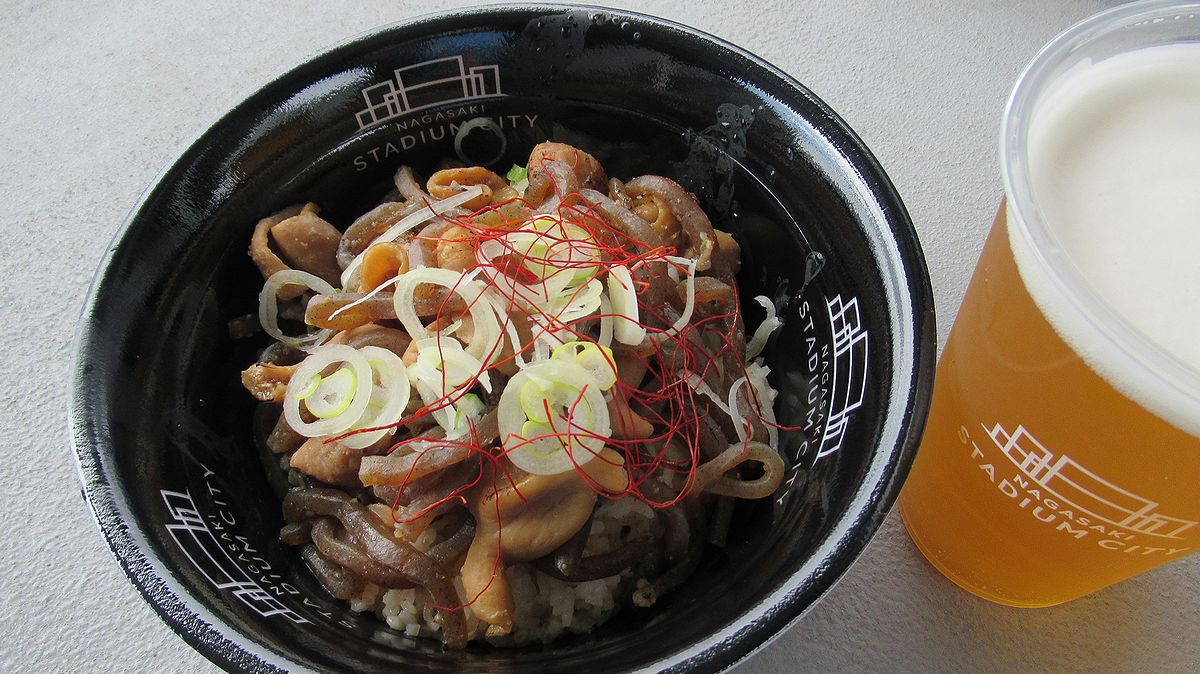 お昼・・・本当は長崎名物トルコライスを食べたかったのですが、ざっと見たところ「高級そうな」ものしかなく、断念。見て回る中で心ひかれたもつ煮丼をいただきました。いい感じでにんにく醤油(?)が利いていておいしく、ビールも美味。