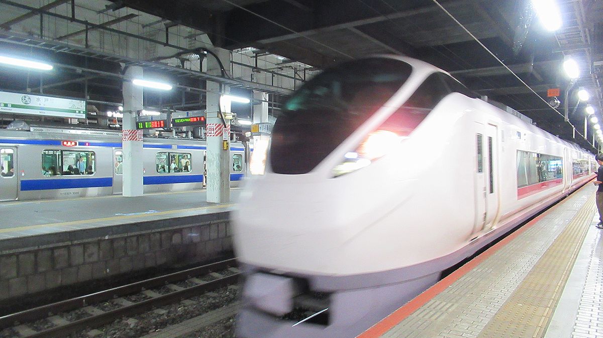 駅前の黄門様御一行に別れの挨拶を告げ、コインロッカーから荷物を取り出して常磐線特急のホームへ。思っていたよりもゆとりをもってホームに到着です。