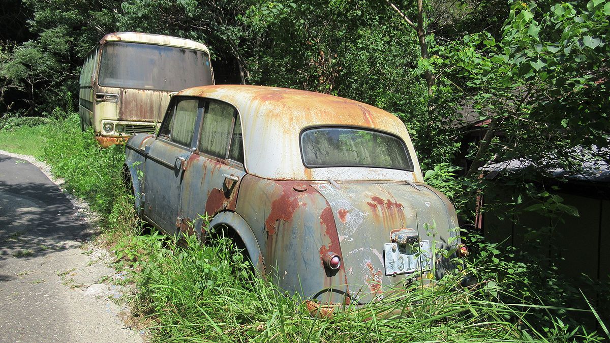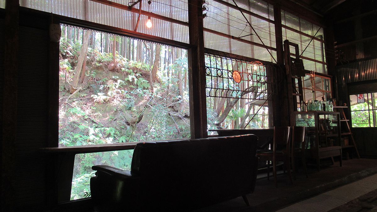 掛川市大野にある「アンティークカフェ ロード」です。沢に沿った小屋には古めかしい家具やバイク、電気製品の数々。
