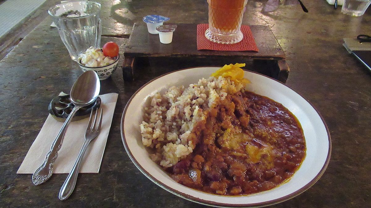 いただいたのは「オリジナルカレー」とアイスコーヒー。十六穀米と豆、鶏挽肉のカレーです。おいしかったです。