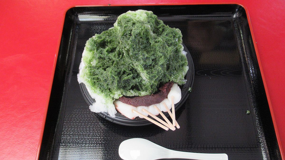 帰りがけ、だんご茶屋で「厄除け氷」をいただきます。抹茶味の少し苦みがかったシロップと厄除け氷のあんこの甘みがいいバランス(´`:) おいしくいただきながら体温冷却(^^;)