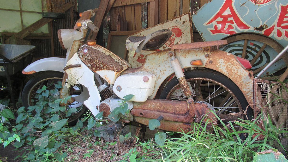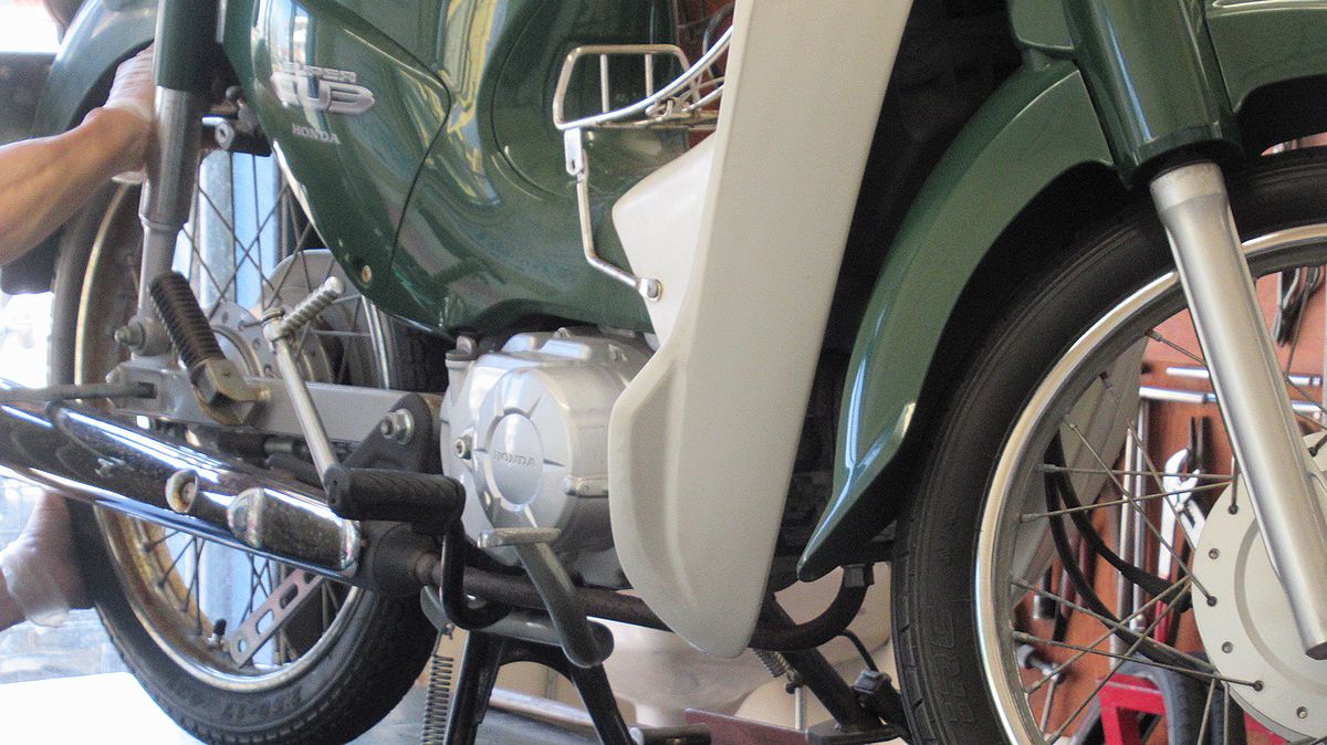 これは!? 「先輩!?」と思いましたが、よく見ると「スズキ」です。スズキもカブ型バイクを出してたの!?